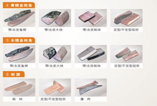 2、基本產品形態:原魚、魚柳、魚段、大板、短冊、生魚片。